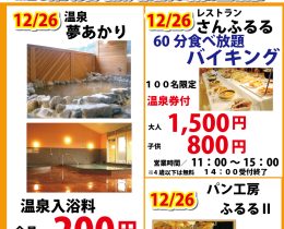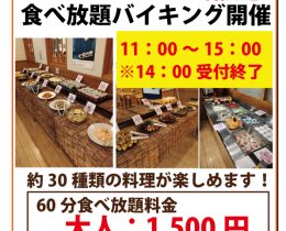 毎月26日の風呂の日サービスデーにレストランにて食べ放題バイキングを開催しています。 …